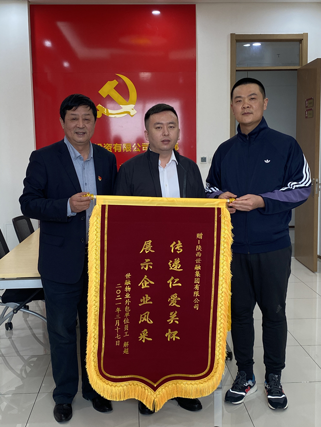4月7日,世融物业保安服务外包公司员工解超不顾身体的虚弱,将一面镌有“传递仁爱关怀,展示企业风采”的锦旗送到世融集团副董事长何彦奎手中,衷心感谢世融党支部及工会组织的热情捐助。何彦奎详细地了解了解超的病情和康复情况,希望解超积极面对生活,早日恢复健康,回到工作岗位。