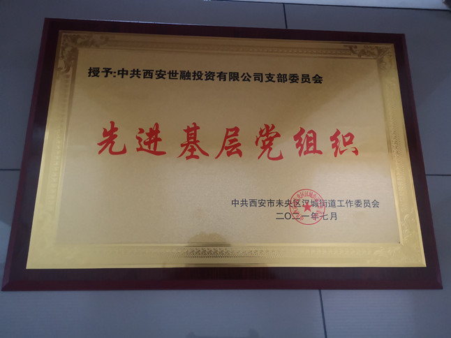 7月9日,在西安市未央区汉城街道召开的学习贯彻习近平总书记“七一”重要讲话动员大会暨“两优一先”表彰大会上,街办党工委集中表彰了10名优秀共产党员、10名优秀党务工作者和5个先进基层党组织。西安世融投资有限公司党支部荣获“先进基层党组织”荣誉称号。